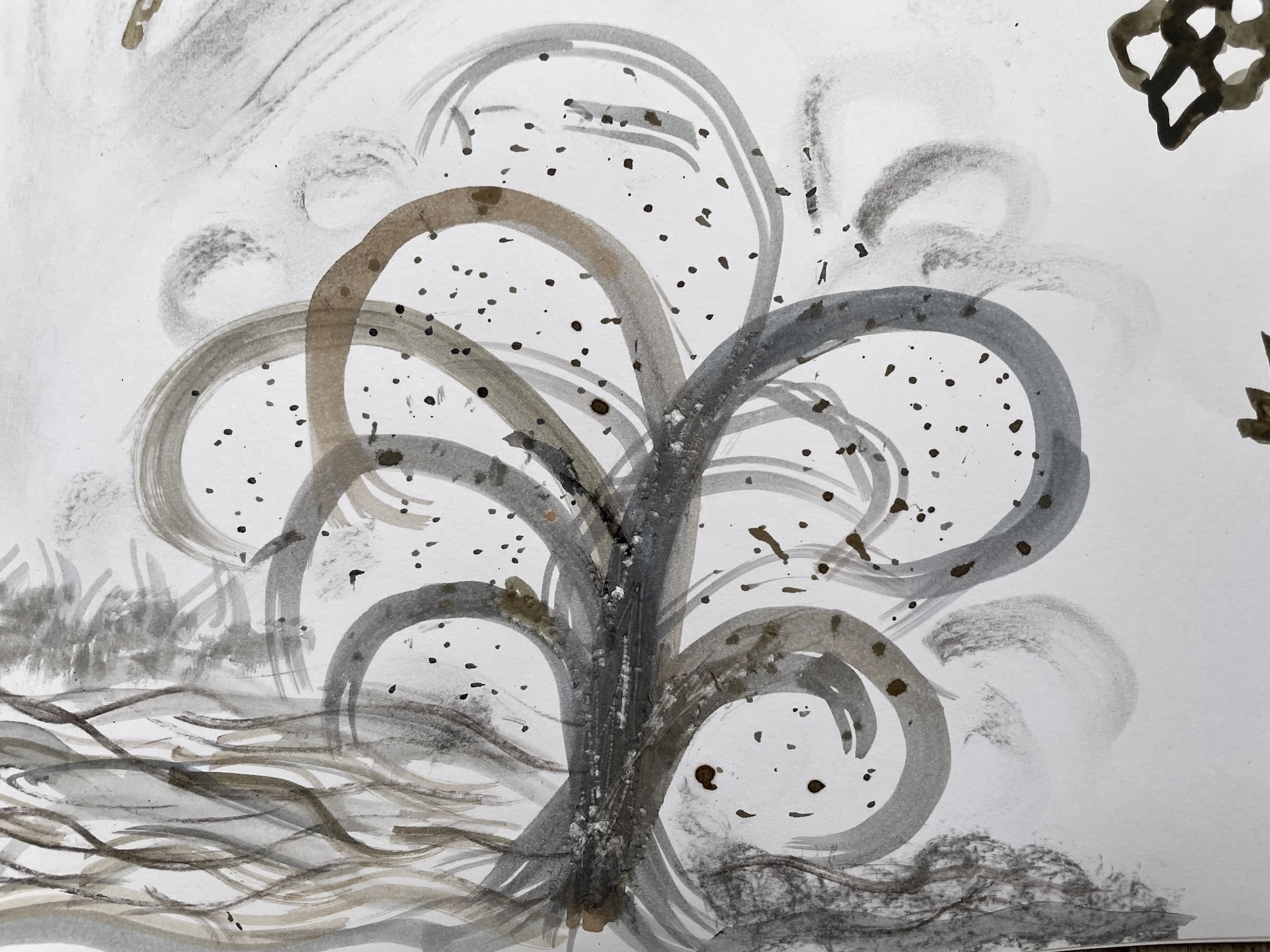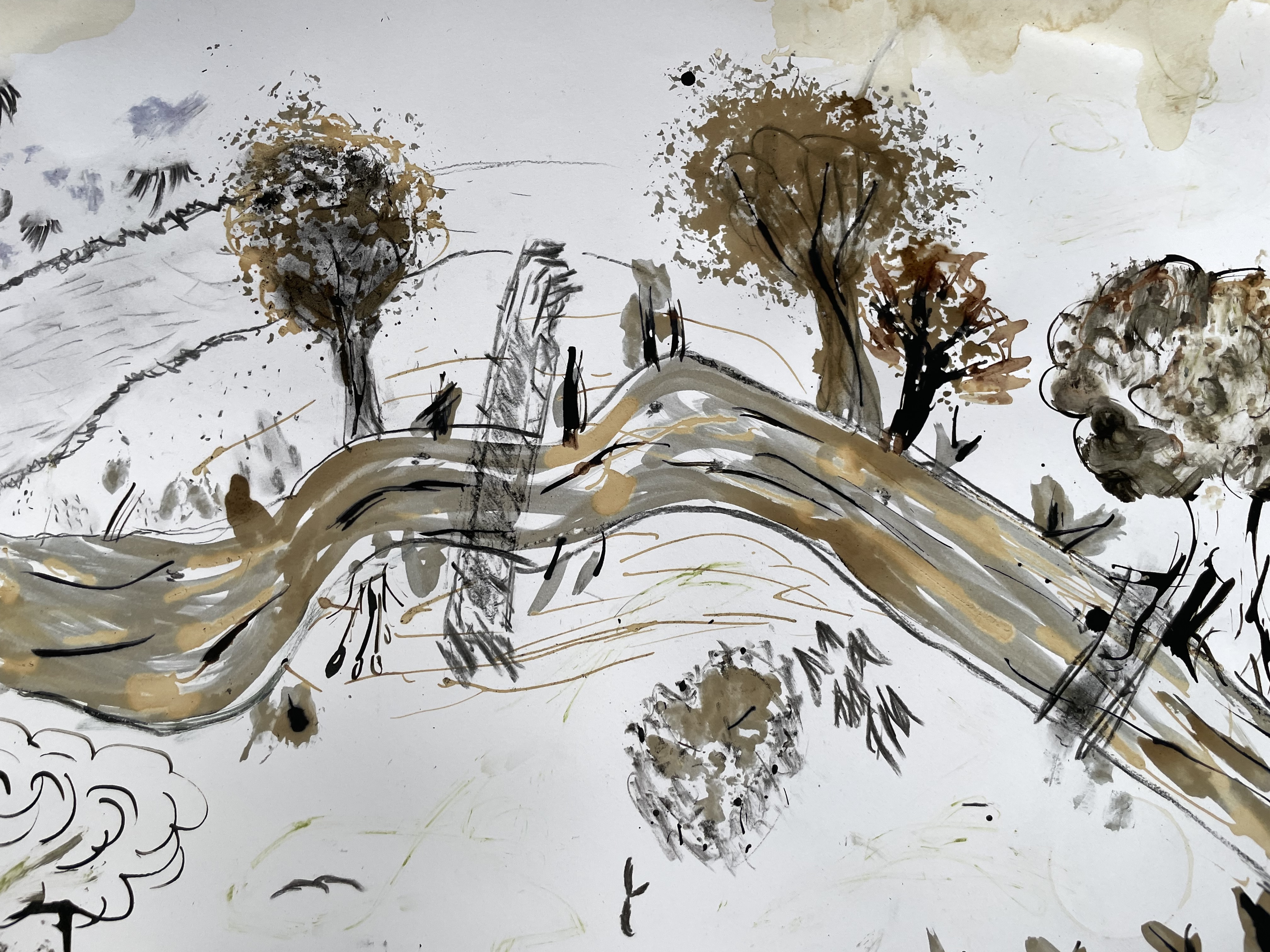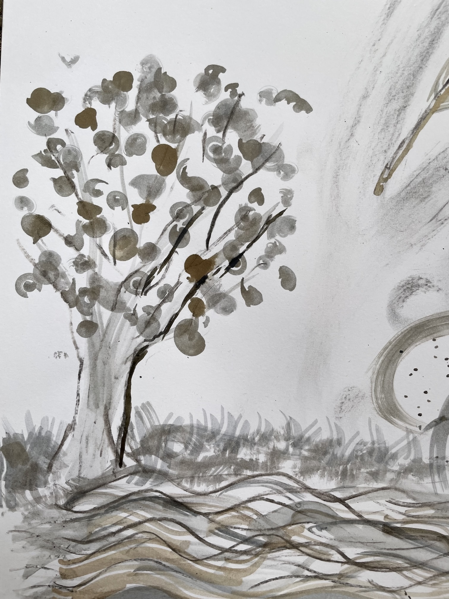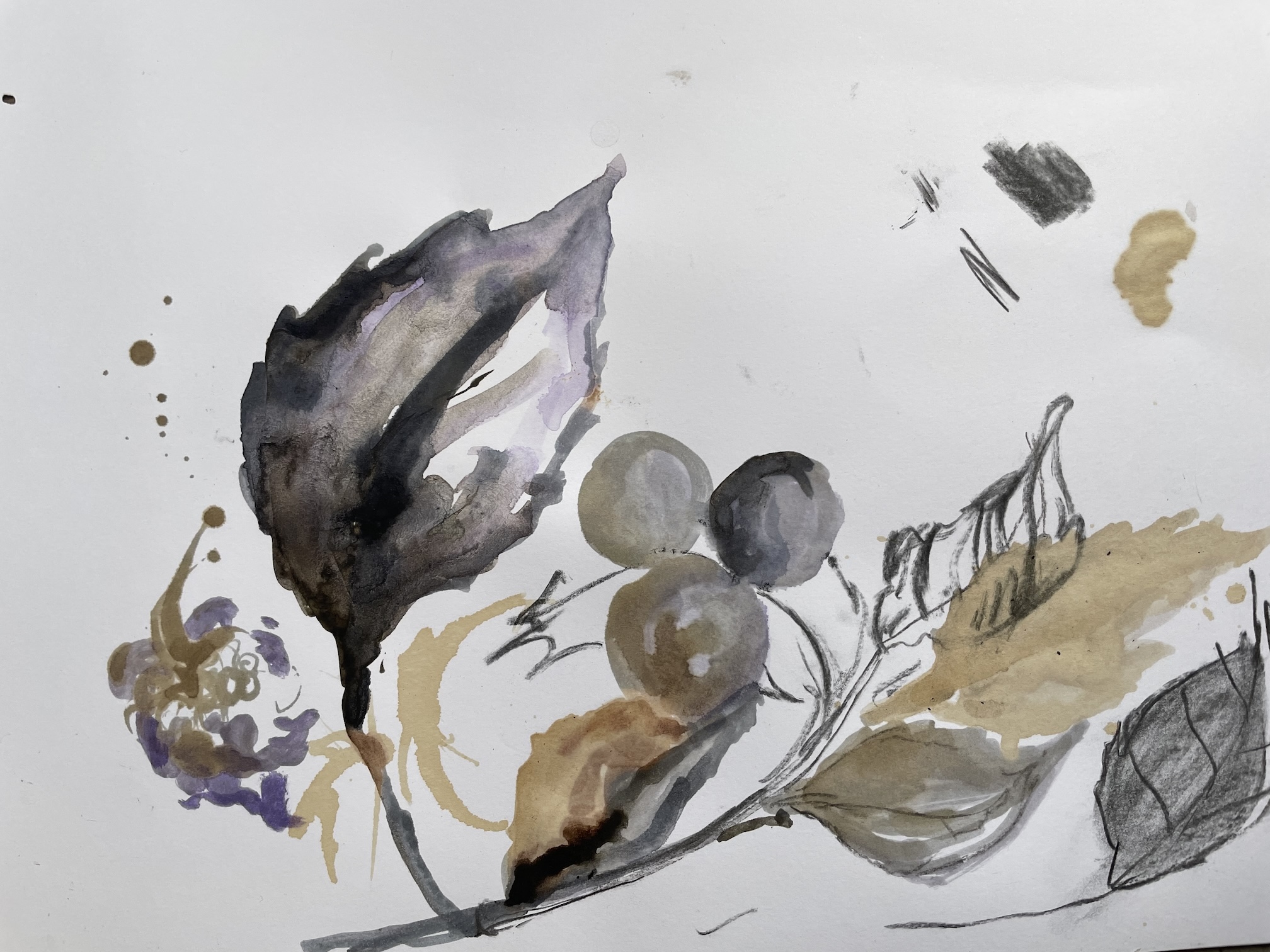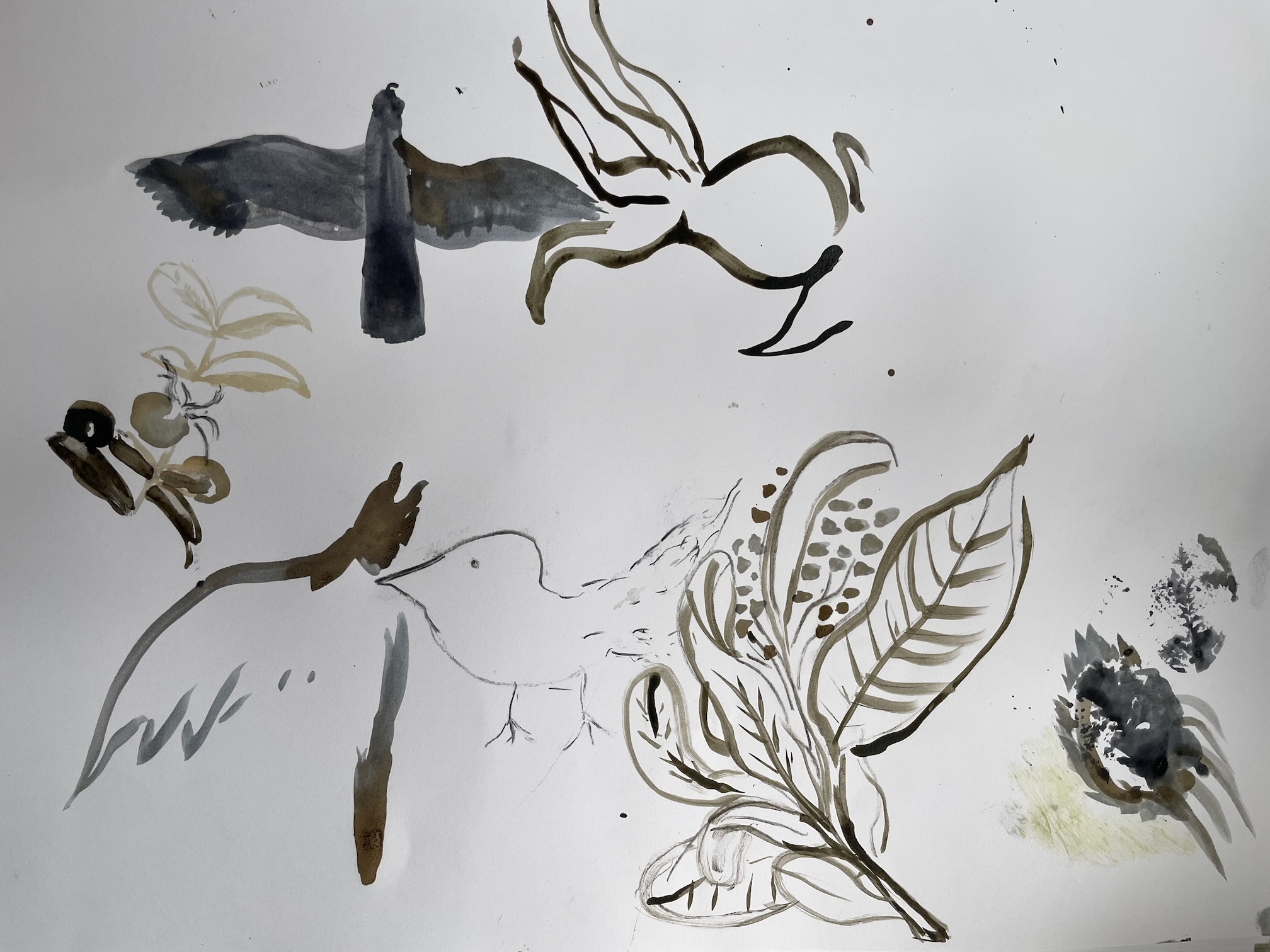 Using the Bramble and oak gall inks we drew images of things we thought we might find in the Glen. After our walk with Éanna we added details that we found on our venture into the Glen.