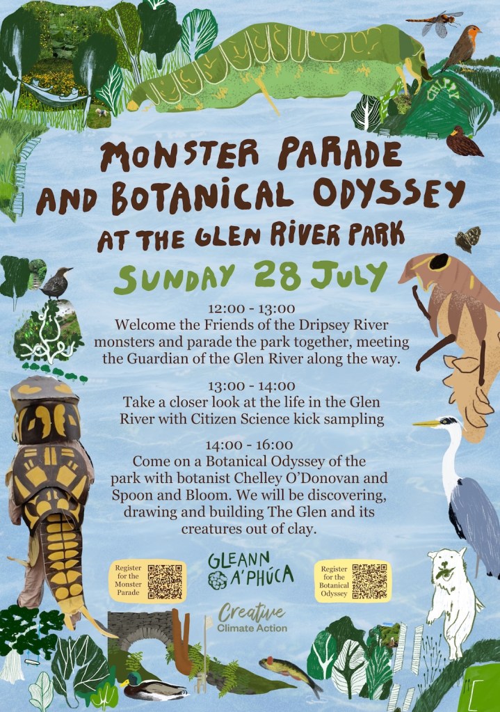 Roll up to the Glen Park for the Monster Parade and Botanical Odyssey – walking – citizen science – drawing – mapping -riparian plantlore and plantlove – modelling from life – bring a picnic